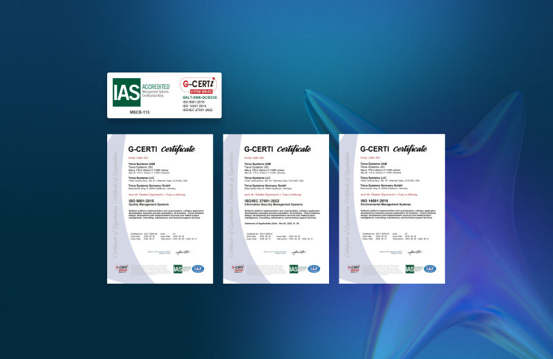 We are proud to announce that Teiva Systems has officially achieved certification in three internationally recognized ISO standards, reinforcing our ongoing commitment to excellence, sustainability, and security.